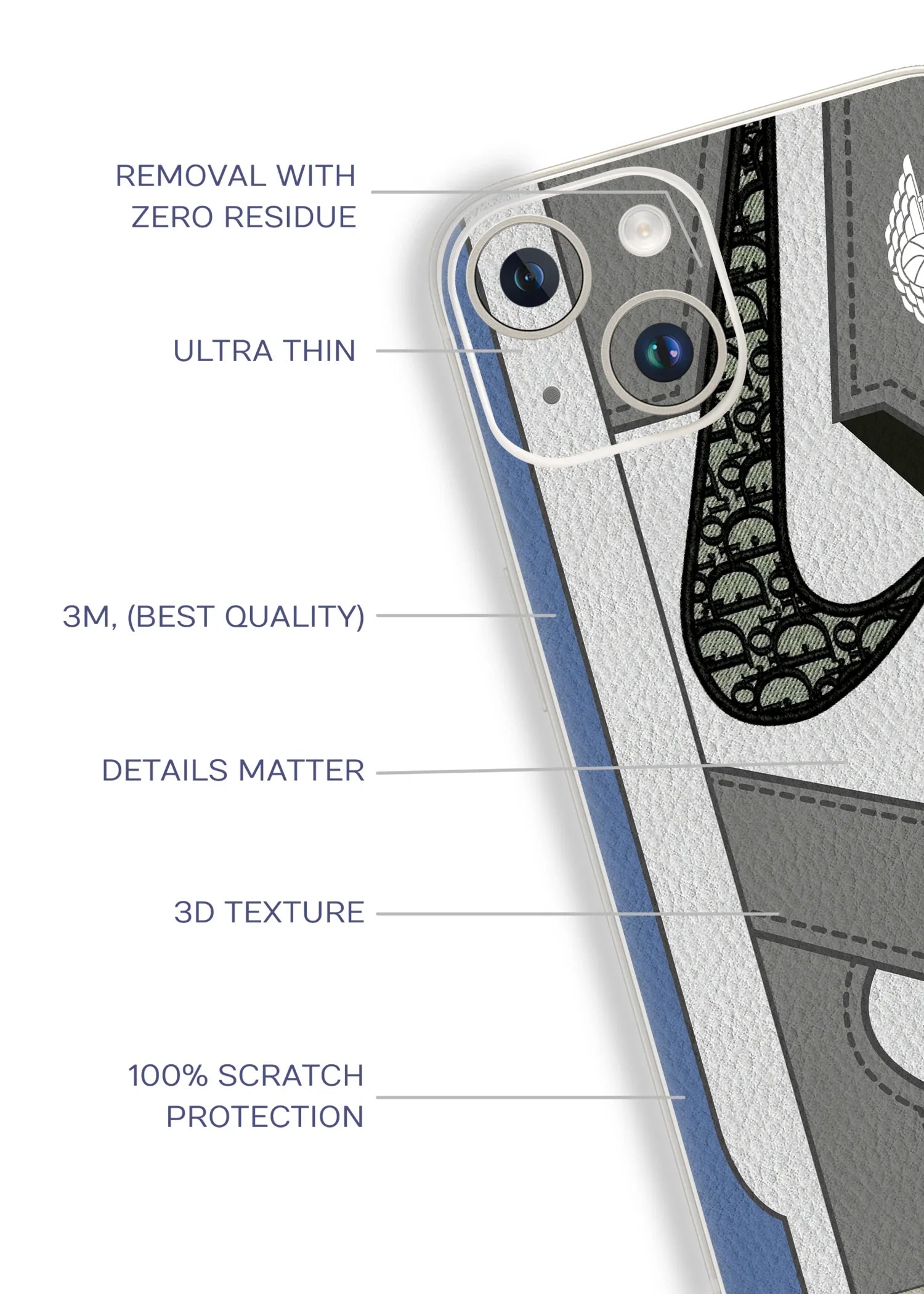 We use premium-grade 3M vinyl that offers a sleek finish, bubble-free installation, and long-lasting durability. It’s residue-free and safe for your device.
